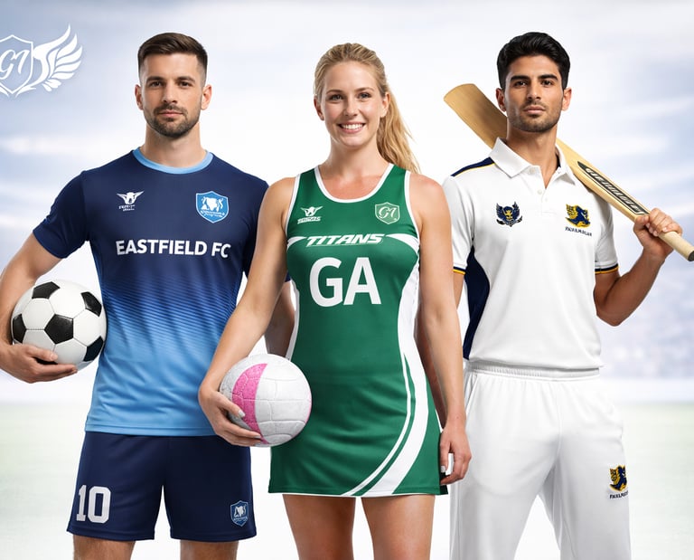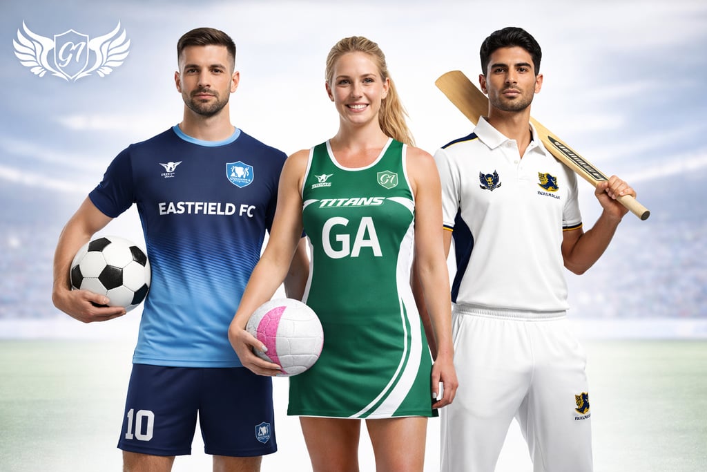 Custom football, cricket, and netball uniforms crafted to your club’s colors.