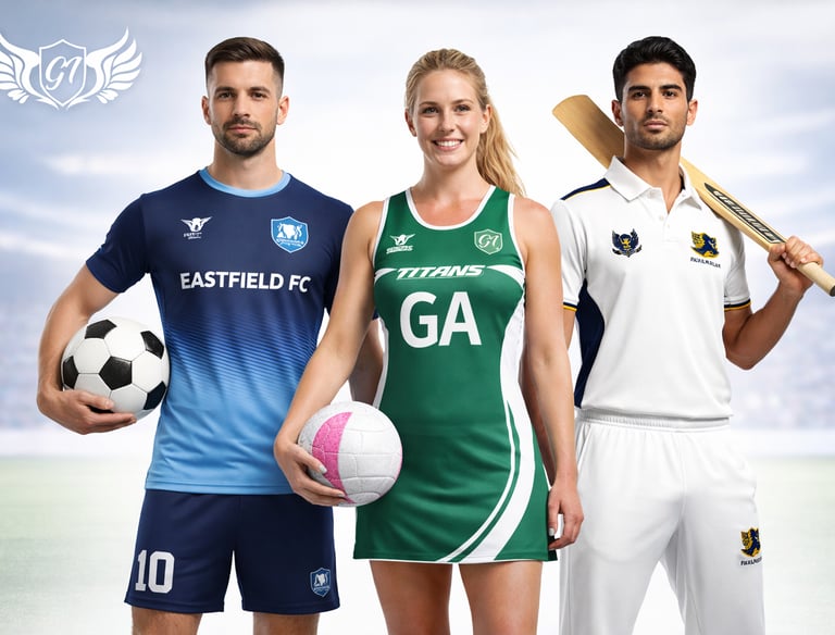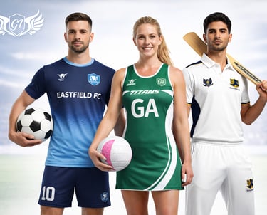 Custom football, cricket, and netball uniforms crafted to your club’s colors.
